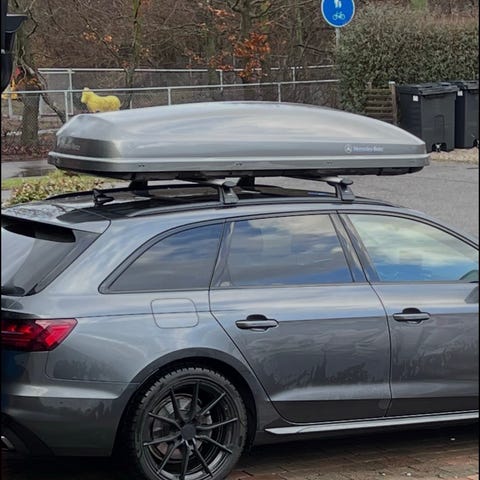 Packline takbox i svart färg. Passar för montering på takräcken av bilar. Används för extra förvaringsutrymme vid transporter.