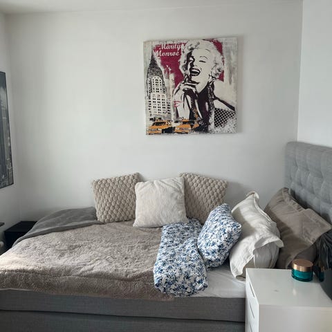 Köpt juni 2021 och i bra skick. Dock några fläckar på bäddmadrassens ena sida samt på resårmadrass (se bilder).
