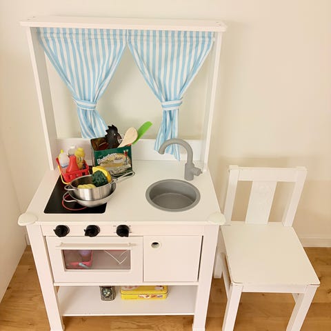 Leksakskök/barnkök med ugn, spisplattor och vask. Synligt använd men i bra skick. 300kr