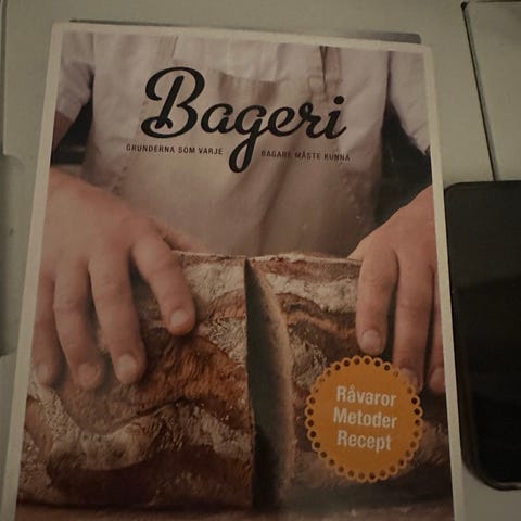 Bageri kokbok med fokus på råvaror, metoder och recept för bakning. Innehåller detaljerade instruktioner och information om olika baktekniker och ingredienser.