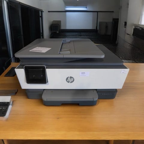 HP OfficeJet Pro 9010 multifunktionsskrivare med funktioner för utskrift, skanning, kopiering och fax. Färgskrivare med pekskärm och automatisk dokumentmatare. Passar för kontorsbruk och hemmaanvändning där flera funktioner behövs i en enhet.