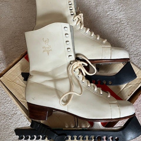 Konståkningsskridskor i klassisk design, storlek 9 (EU 42), men passar bättre som EU 41. De ger bra stöd och hög komfort, och fungerar utmärkt både för konståkning och allmän skridskoåkning.