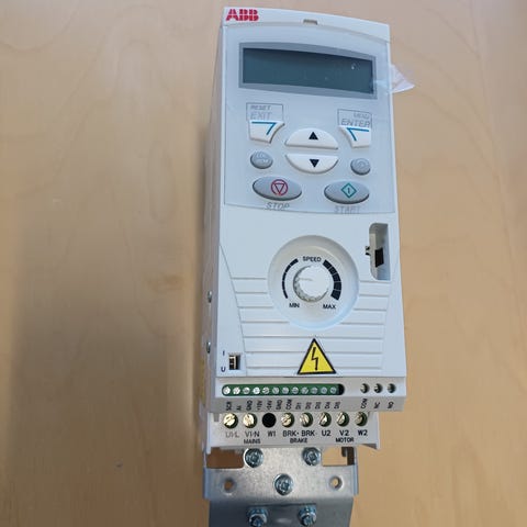 Danfoss VLT HVAC Drive frekvensomriktare med effekt på 3,0 kW och en strömstyrka på 5,7 A. Produkten är tillverkad i Danmark och används för styrning av HVAC-system. Den har en digital display och flera funktionsknappar för inställning och drift. Förhandlingsbart pris!