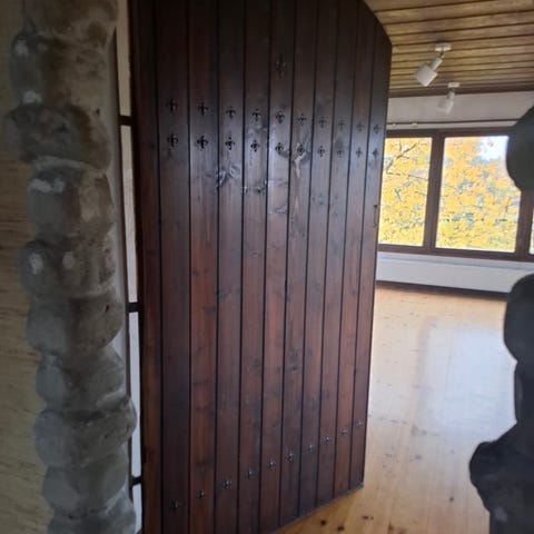 Antik trädörr/rumsavdelare med snidade detaljer.