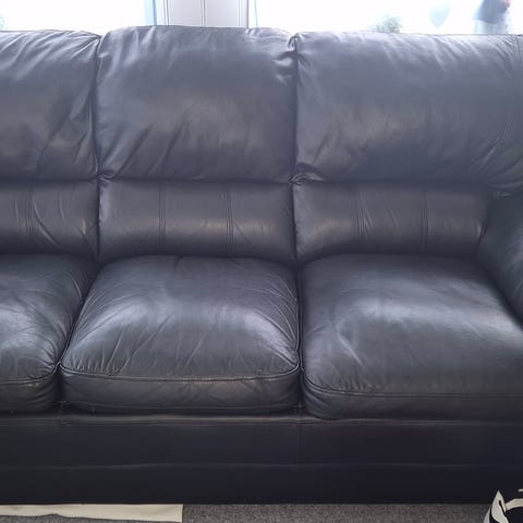 Brun divan soffa i läder . Bredd 2 sits =140 cm. Divan del = 215 cm.