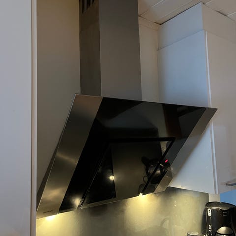 Fläktmodell Luna i black steel utförande från norska Röros. Har suttit i vår uställning men ej varit i bruk.