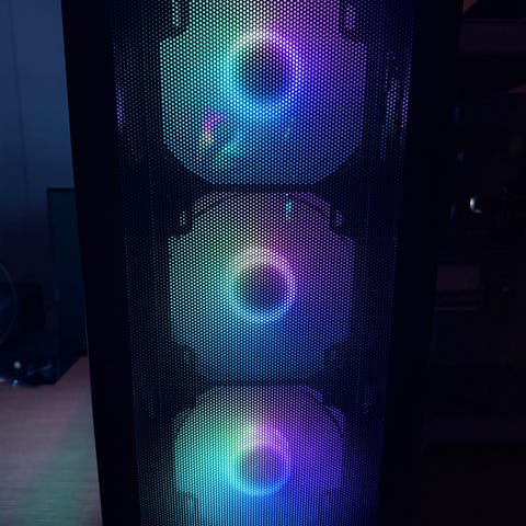 6× Galaxy RGB-fläktar (800–2000 RPM, ≤29 dBA – tyst och effektiv)