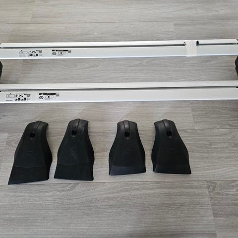 Toyota original lasthållare/takräcken i aluminium. Inkluderar två delar och en svart förvaringsväska. Används för att transportera last på bilens tak.