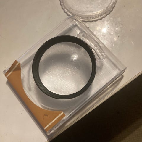 Leica UVa II 49 mm filter. UV-filter med en diameter på 49 mm, avsett för att minska UV-ljus och skydda kameralinsen.