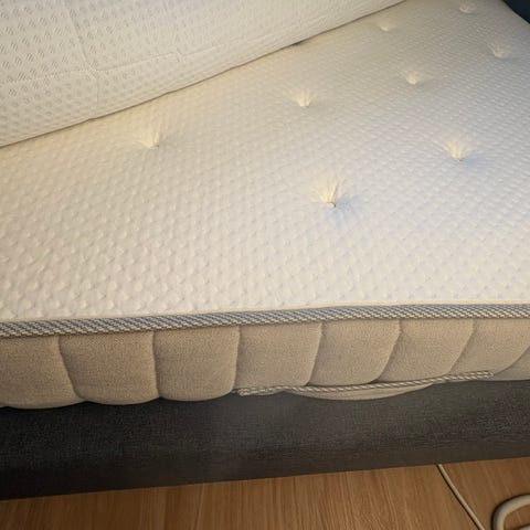 IKEA Vatneström madrass med medium fasthet. Passar för olika sovpositioner och ger stöd för kroppen. Färgen är beige och madrassen är tillverkad av material anpassade för komfort och hållbarhet.
