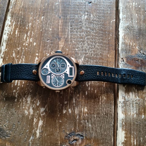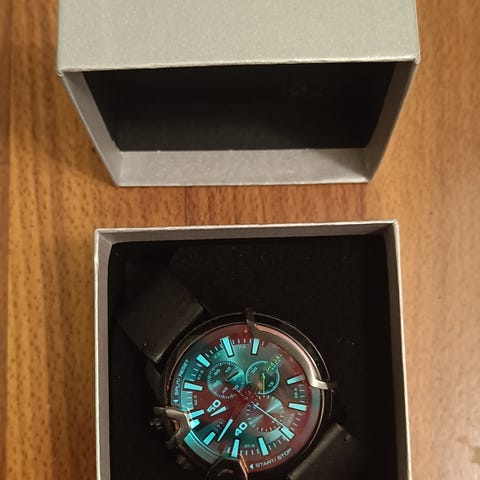 Funktioner hos dieselarmbandsuret: · Klassificering: Diesel herrklocka Chrono · Guess Referensnummer: DZ7259 · Urverk: Batteridrivet kvartsurverk · arrangemang: 2 analoga tidsvisningar · Funktioner: timme, minut, sekund, 24 timmar. Visa, datum och stoppursfunktion · visare: silverlysande visare – urtavlans färg: svart – glas: härdat mineralglas – boettmått utan krona: ca 51 mm · Boettens höjd: ca 14 mm · Testad vattentät: 3 bar · Hölje i matt rostfritt stål, delvis polerat · Armband: högkvalitativt rostfritt stål armband, delvis polerat