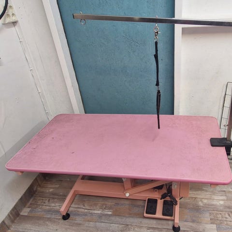 Elektriskt höj- och sänkbart trimbord för hund, ca 7 år gammalt. Galge ingår.