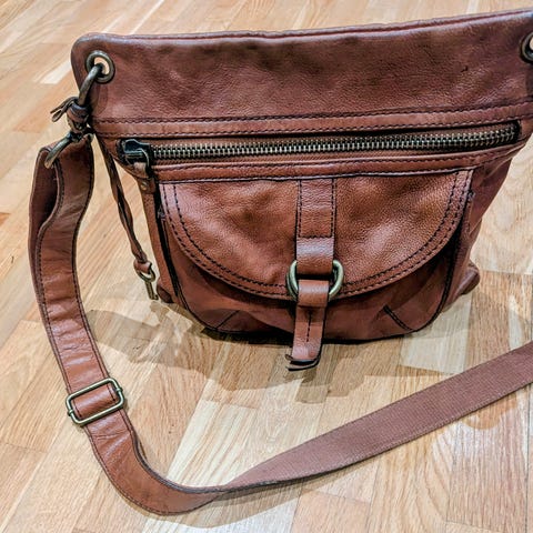 Spikes & Sparrow väska tillverkad i läder. Väskan har flera fack framtill och en justerbar axelrem. Färgen är brun och designen är praktisk för vardagligt bruk.