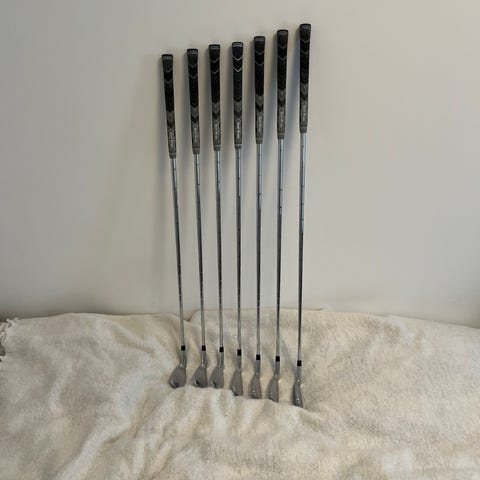 Fantastiskt fina järnklubbor från Takomo. Kortade 0,5 tum, midsize-grepp och Dynamic golf 300-S skaft