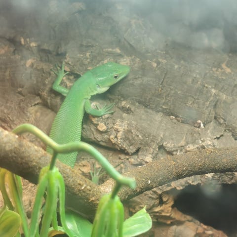 Han är en snäll och social ödla som tycker om att bli klappad och gärna kommer upp i händerna eller famnen. Han är lugn i hantering och van vid människor.