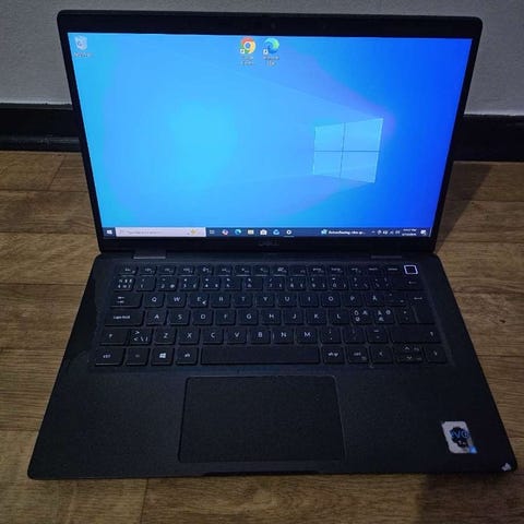 Dell Inspiron laptop med silverfärgad design. Inkluderar tangentbord och pekplatta.