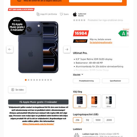 Apple iPhone 17 Pro max mobiltelefon med 256 GB lagringskapacitet.