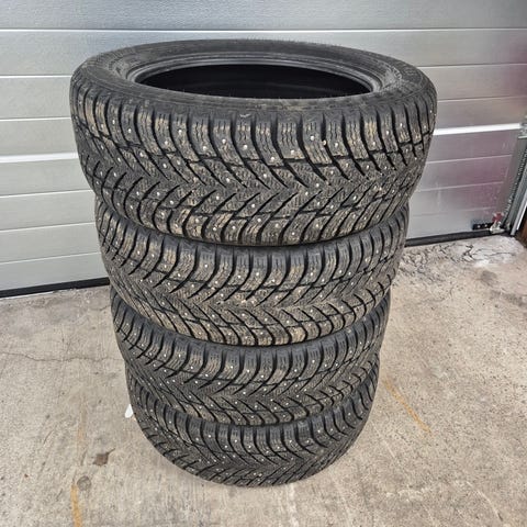Hakkapelitta 9 215/50-19 dubbdäck i fint skick säljes, endast däck, inga fälgar.