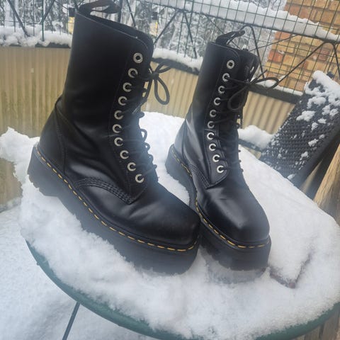 Kängorna har fått nya hälar. Innersulan saknas. Annars i gott skick.