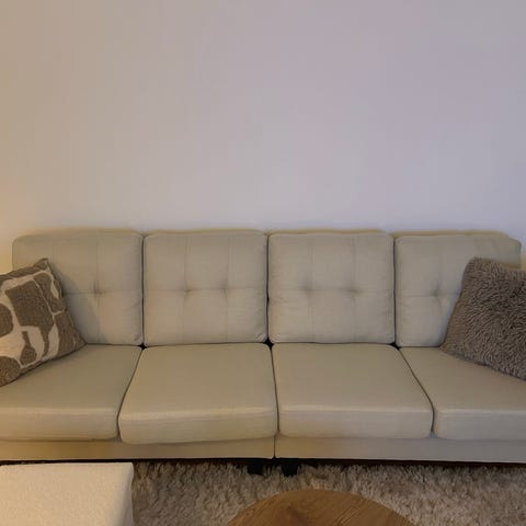 Säljer våran soffa då vi ska köpa en annan. Finns även förvaring under man kan öppna för att förvara täcken osv.