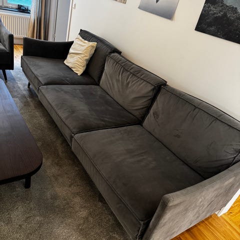 Rymlig och bekväm 3-sits soffa från Mio med generös sittkomfort. Djup dyna och mjukt tyg som både är snyggt och skönt att sitta i. Passar perfekt i vardagsrum, öppna ytor eller tillsammans med fåtölj/bord. Nypris 9000kr