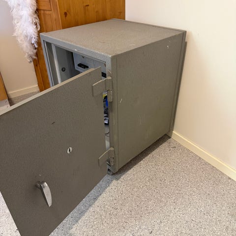 Ett kassaskåp från Rosengrens i Göteborg bortskänkes mot avhämtning. Väldigt tungt. Vet inte vikten men ta med bärhjälp. Brandsäker klass A2. Finns i Kil.