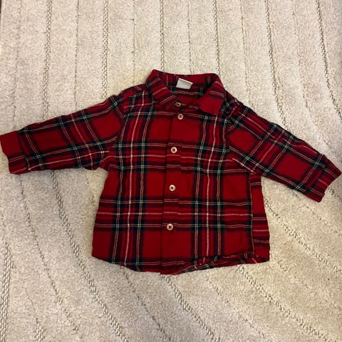 1x blå fin-rutig skjorta från H&M. Utan krage. Bröstficka bara som prydnad.