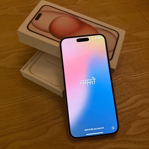 Apple iPhone 15 Plus med 128 GB lagringskapacitet.