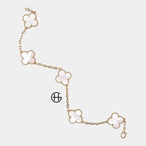 I’m selling this beautiful bracelet from Van Cleef & Arpels. It is a Vintage Alhambra bracelet featuring 5 motifs, crafted in 18K yellow gold with carnelian.