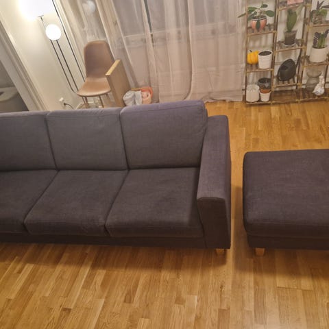 Soffa som är använd men i OK skick(därav låga priset). Ett slitet parti under ena kudden(syns inte) annars skön och har funkat bra