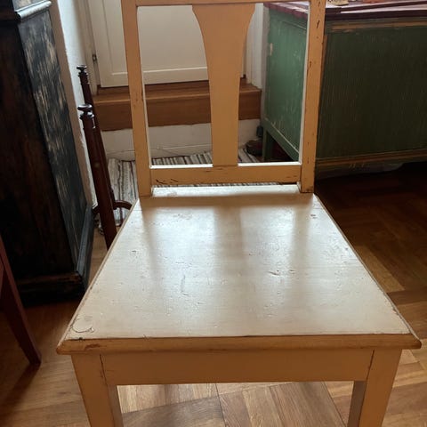 1st Klassisk stadig/ stabil köksstol med klädd sista. Lätta att byta tyg på.