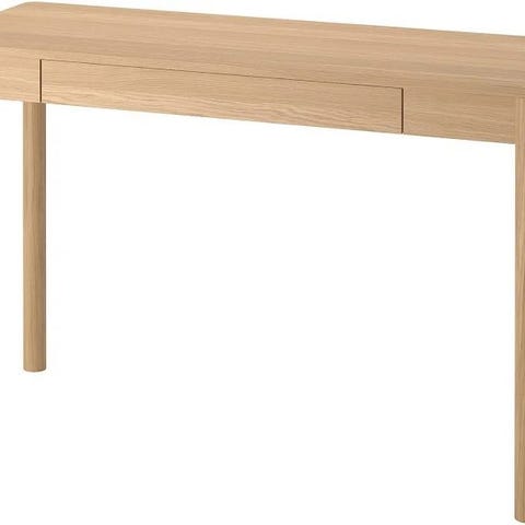 Skrivbord/datorbord i ljus träfaner med flera hyllor för förvaring och en utdragbar skiva för tangentbordet. Passar för kontor eller arbetsrum och ger organiserad plats för dator och tillbehör.