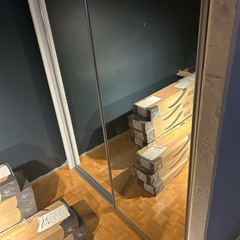 Två stycken skjutdörrar i spegel. 71x233cm vardera.