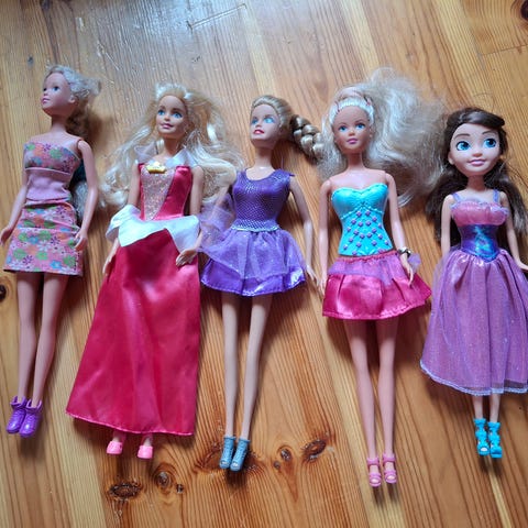 Liten säng, med bord och stolar (inte Barbie men passar till små barn-Barbie dockor)