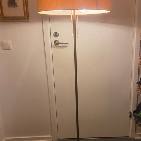 Säljer en stilren golvlampa från Falkenbergs Belysning (FLB), modell 7011, tillverkad under 1960-talet. Lampan är i mässing och har en elegant, tidstypisk design med justerbar arm och konformad skärm – perfekt som läs- eller stämningsbelysning.