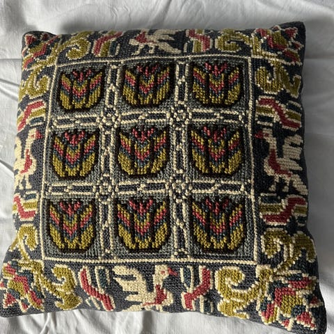 Handbroderad väggbonad med vackra beslag