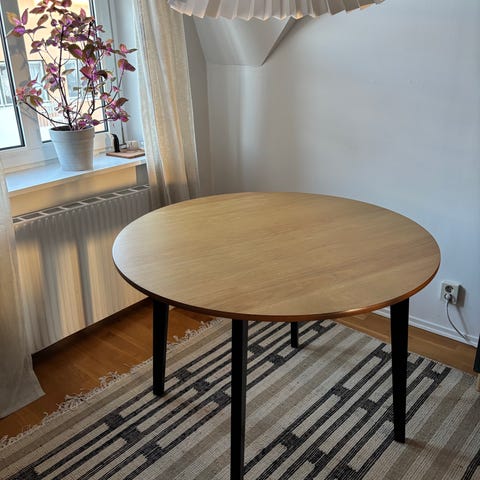 Fint svart runt matbord med fyra ben