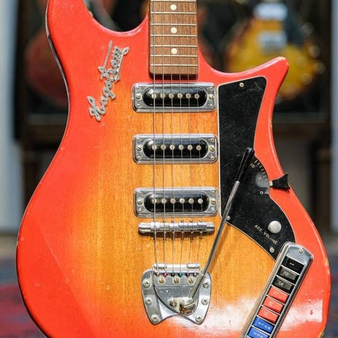 Alla originaldelar är intakta och gitarren behåller sitt autentiska utseende och spelkänsla.