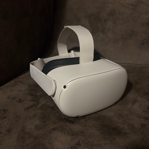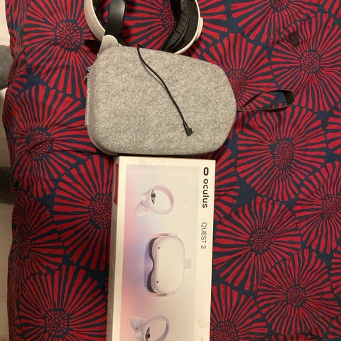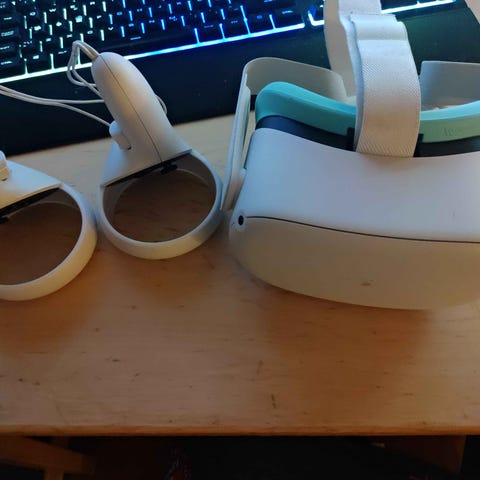 Oculus Quest 2med två trådlösa kontroller. Systemet är utformat för virtuell verklighet och inkluderar headset och handkontroller för interaktiv användning. Har köpt till elite strap från meta och har köpt ny skum hrej runt linserna som man kan se i bilden perfekt för bekväm andvändning, den kan skickas tveka inte på att fråga om ni har några frågor eller vill ha mer bilder! Jag har köpt till ett elite strap och ny skumgrej runt linserna! Pris kan prutas ned