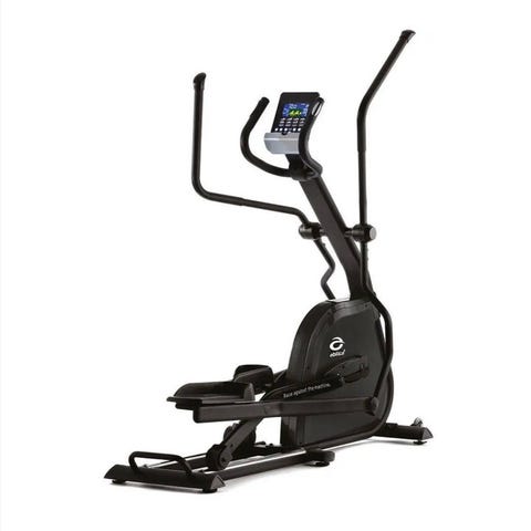 Abilica Crosstrainer är en elliptisk träningsmaskin i svart färg. Den är utrustad med en digital display som visar träningsdata och olika program. Maskinen är designad för hemmabruk och möjliggör konditionsträning med låg påverkan på lederna.