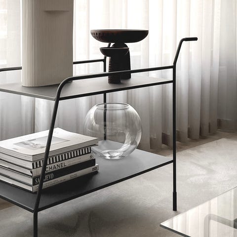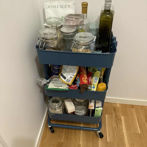 Tålig rullvagn på hjul, praktisk för avställning och servering.