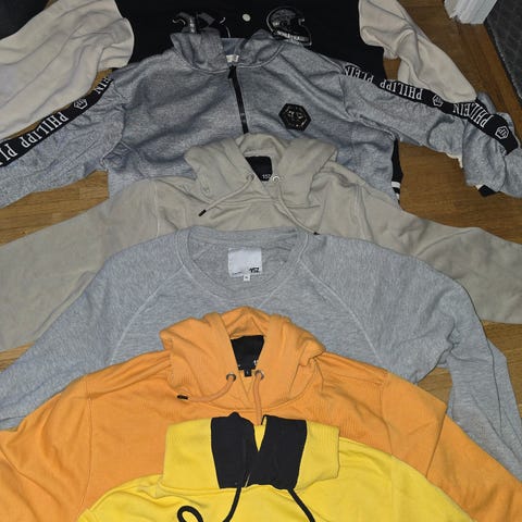 En hel flyttlåda full med herrkläder, mesta är i M finns enstaka i S och L. Allt är tvättat men inte struket. Skjortor, piké, linne, mjukis. Lite av varje helt enkelt. Säljs endast som hel låda.