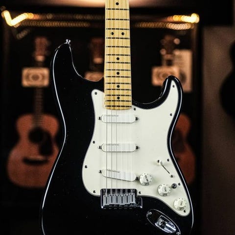 Tillverkad i USA (åtminstone kroppen), inklusive hardcase. Kroppen och elektroniken kommer från en Fender-gitarr och halsen är en obrandad 21-bands lönnhals med satinfinish. Mickarna är Lace Sensors (blå i stallpositionen och silver i mitten- och halspositionerna) och elektroniken verkar orörd. Märkt JUN22 1989 eller 1990 (svårt att tyda) och markerad med MS i urfräsningen.