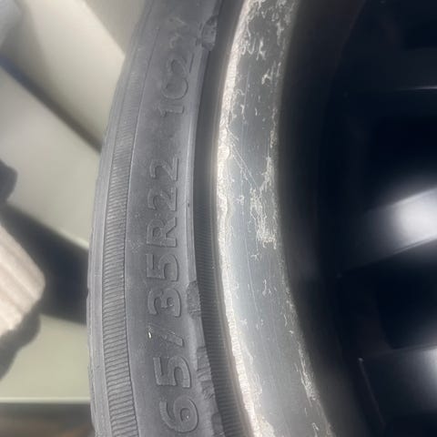 Säjer en uppsättning Michelin total performance, med dimensionerna, 295/35R22. Däcken har enbart rullat cirka 500 mil och mönsterdjupet uppskattas vara kring 8 mm.