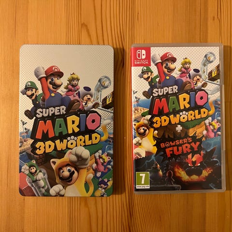 Nintendo Switch Super Mario 3D World + Bowser's Fury spel. Spelet innehåller två delar: Super Mario 3D World och Bowser's Fury.