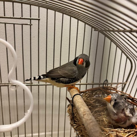I början på december kläcktes en kull och i januari ännu en med andra föräldrar. De klarar sig nu själva och kan flytta till ett nytt hem. Alla utom en är normalfärgade utan krusiduller. En hane är vitbrokig.