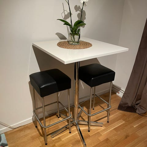 Säljer ett barbord i ek och 2 par stolar i mycket gott skick. Bord och stolar köptes för ett år sedan på Ekeby Möbler.