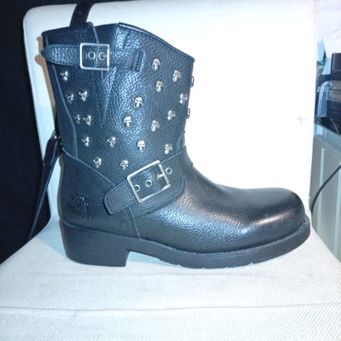 Trendiga orangefärgade boots med svart sula och resår på sidorna. Detaljer med logotyp på dragflikarna. De är stl 39 men passar som 38. Köpt på NK i Göteborg.