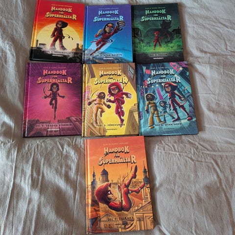 Säljer ett paket böcker i nyskick. Alla böcker är som nya, inga sidor är vikta, skrivna i eller skadade. Perfekt för läsning, samling eller vidareförsäljning. Nypris är betydligt högre. Säljs för 130kr/st, 1000 för hela paketet.