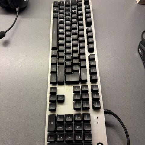 Logitech G Pro mekaniskt tangentbord med svart färg. Tangentbordet har mekaniska brytare och är designat för gaming och skrivuppgifter. Kompakt design utan numerisk knappsats.
